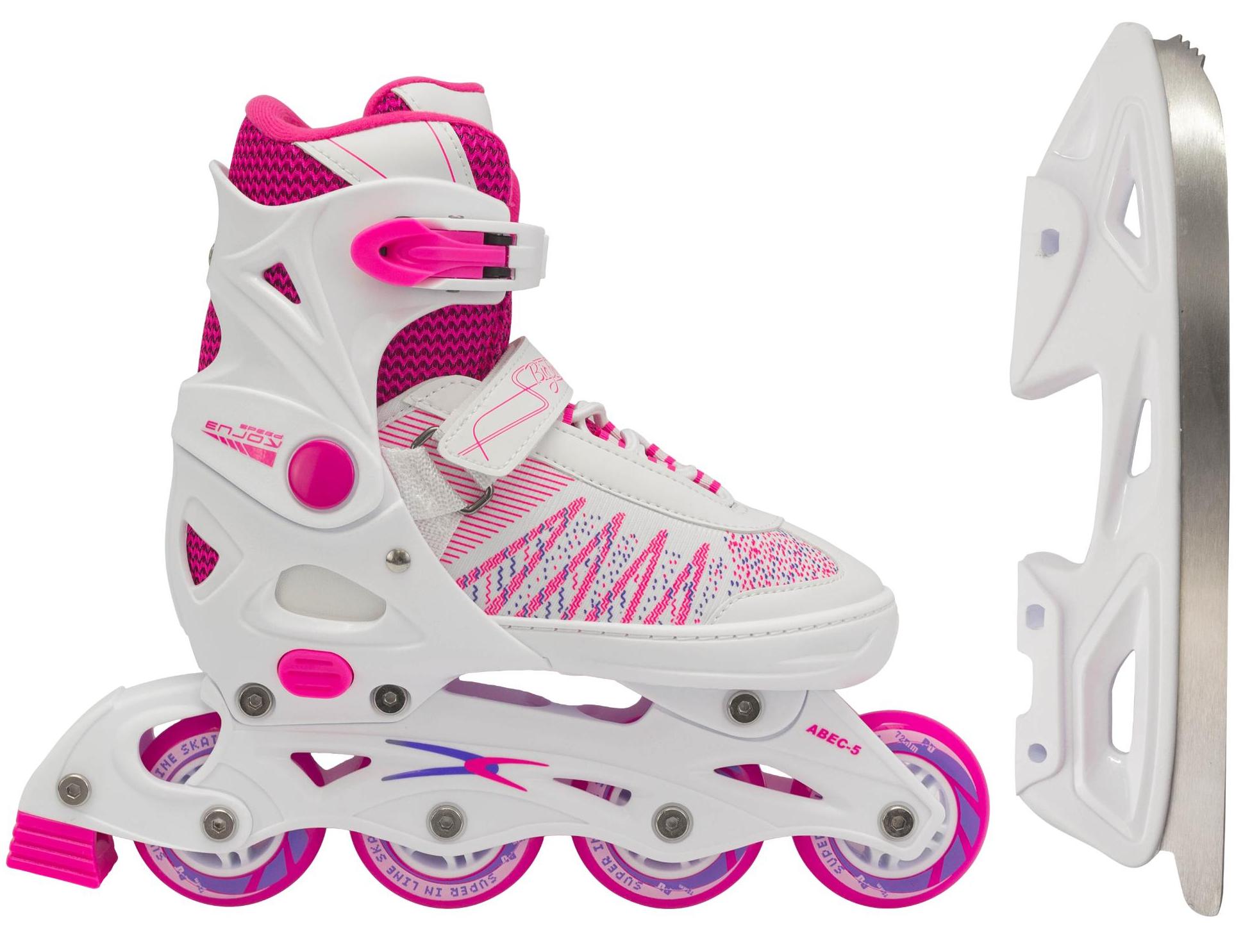 Коньки-ролики BIG BRO PW-223B-157 - это универсальный спортивный товар для детей и взрослых, который представляет собой раздвижные коньки 2 в 1. Они позволяют заниматься ездой на роликах летом и катанием на коньках зимой, а также экономят место и деньги на покупке двух отдельных пар обуви. Мягкий ботинок из нейлона и прочного пластика с анатомическим кроем и жесткой подошвой обеспечивает прекрасную фиксацию стопы и защиту от травм. Внутри ботинка находится мягкая и комфортная подкладка и стелька из синтетического текстиля, которые обеспечивают дополнительный комфорт во время катания. Удобный механизм застегивания состоит из шнуровки, клипсы с фиксатором и липучки, что дает возможность легко и быстро регулировать обувь под индивидуальные потребности и размер ноги. Коньки имеют высококачественное лезвие из нержавеющей стали, покрытое специальным защитным напылением, которое обеспечивает наилучшее скольжение и устойчивость на льду. Роликовые подшипники обеспечивают прекрасный накат и высокую скорость при катании на роликах. Коньки-ролики BIG BRO PW-223B-157 - это оптимальный выбор для тех, кто хочет получить удовольствие от занятий спортом и насладиться свободой движения в любое время года.Характеристики: